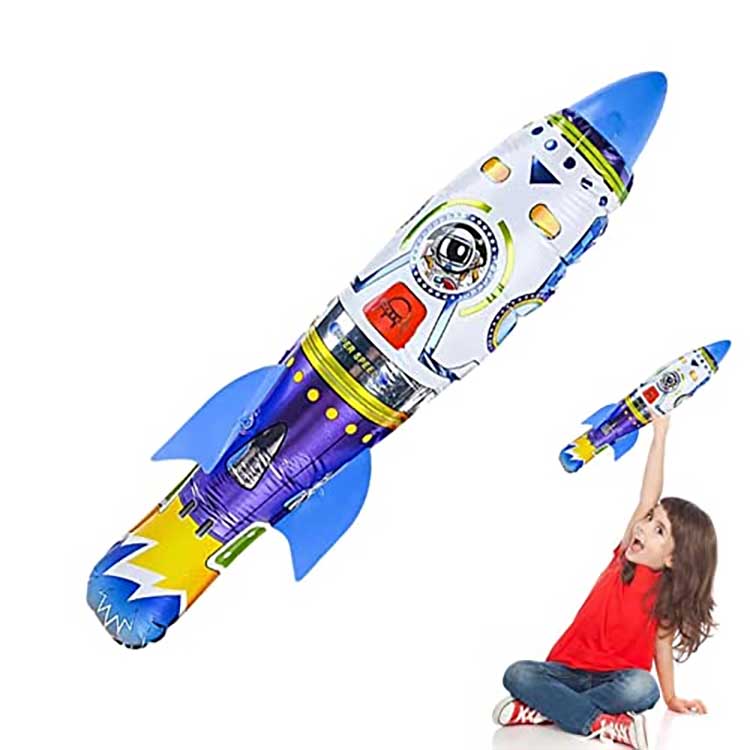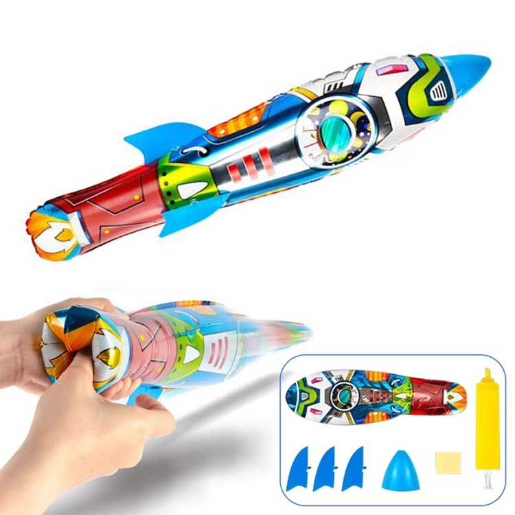 3D-ракетна фольгована повітряна куля для метання надувних також дуже гнучка з точки зору гри; для цього не потрібна електрика, просто киньте його вручну, щоб отримати потужність у польоті. Щоб змусити ракету летіти далеко, все залежить від того, наскільки високо ви її тримаєте та яку силу використовуєте, кидаючи її, чим більше сили і чим вище ви її тримаєте, тим далі вона полетить.