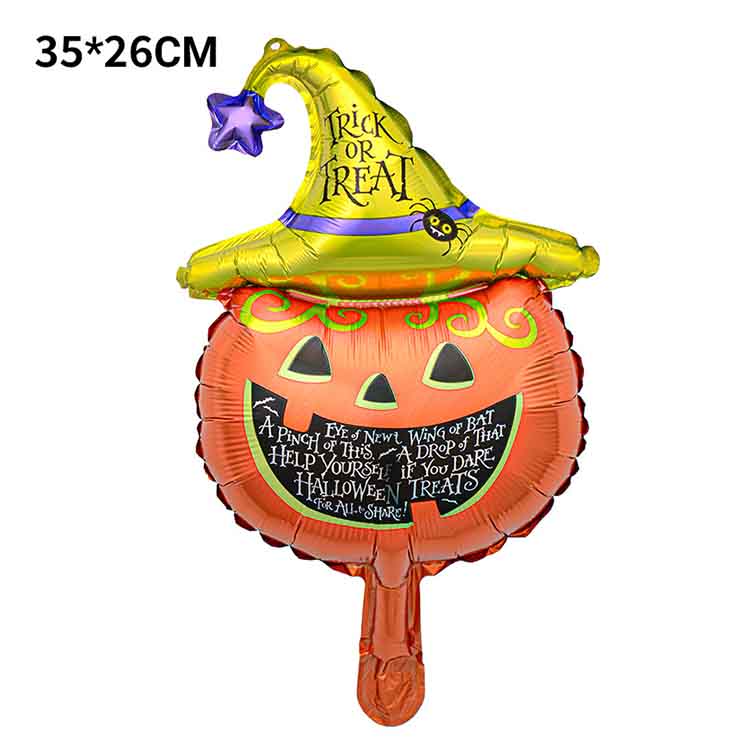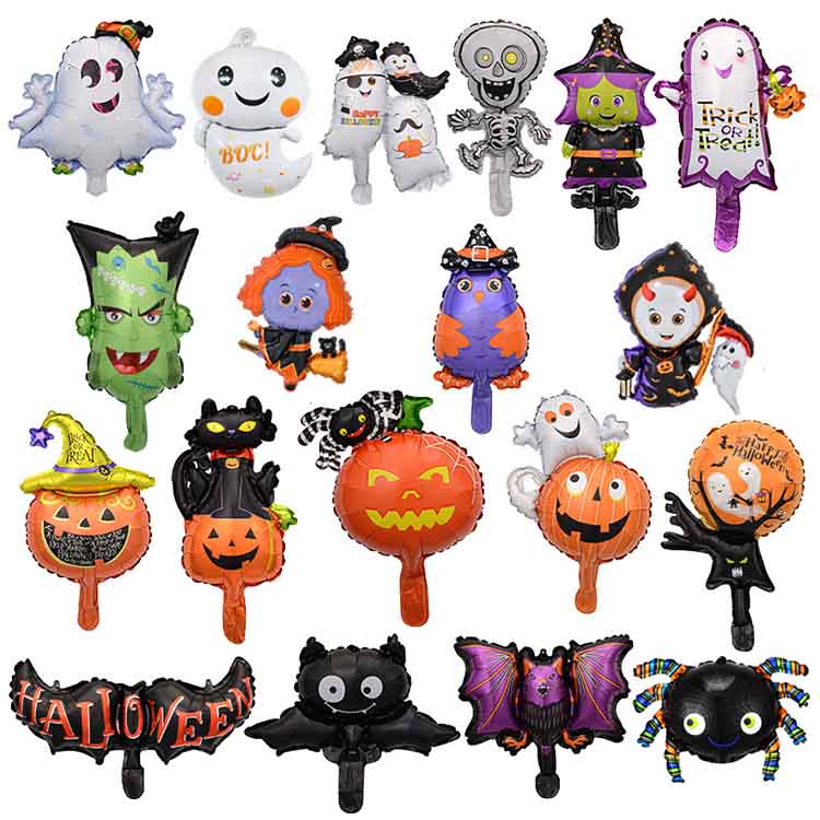 Ця алюмінієва повітряна куля поєднує класичні елементи Хеллоуїна, такі як черепи, гарбузові ліхтарі, кажани, павуки тощо. Форма мультфільму мила і трохи дивна. Міні -розмір може легко створити сильну святкову атмосферу, незалежно від того, що вона повіситься поодинці або розміщується в поєднанні.