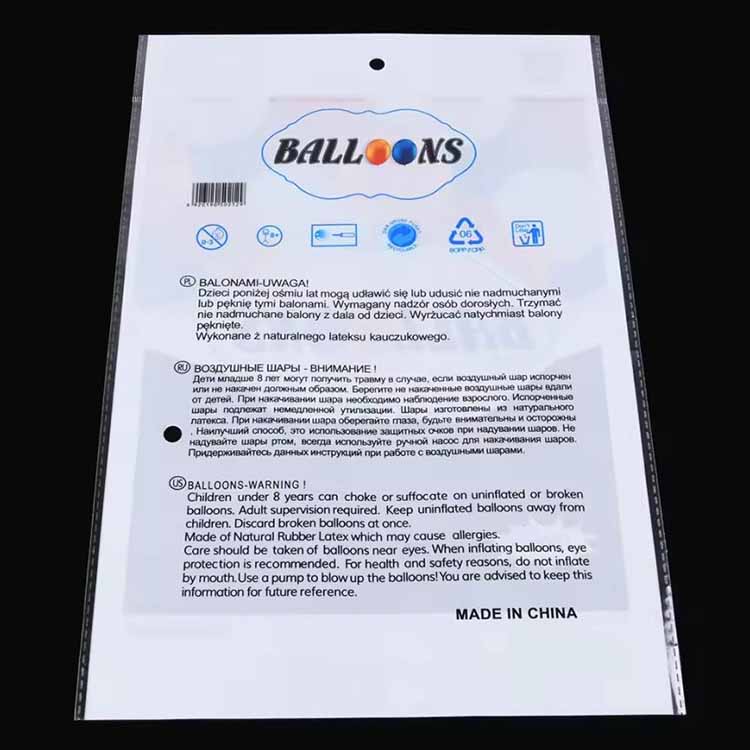 Упаковки з повітряною кулею зазвичай виготовляються з матеріалу CPP (литого поліпропілену). Оскільки плівка CPP має хорошу гнучкість та стійкість до холоду, вона дуже підходить для виготовлення мішків на повітряній кулі. У той же час, прозорість та глянсість матеріалу CPP також дуже високі, що може краще показати колір та візерунок повітряних куль. Крім того, матеріали CPP мають хорошу пластичність і легко друкувати, з'єднувати та обробляти, які можуть відповідати різним вимогам мішків на повітряній кулі.