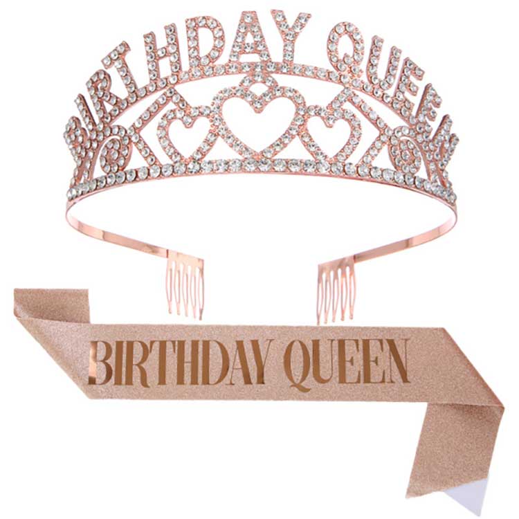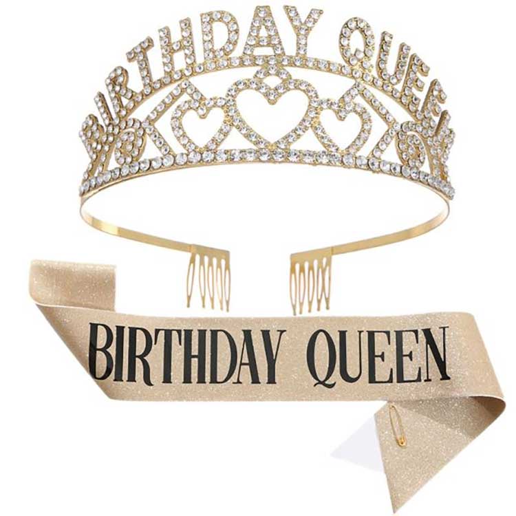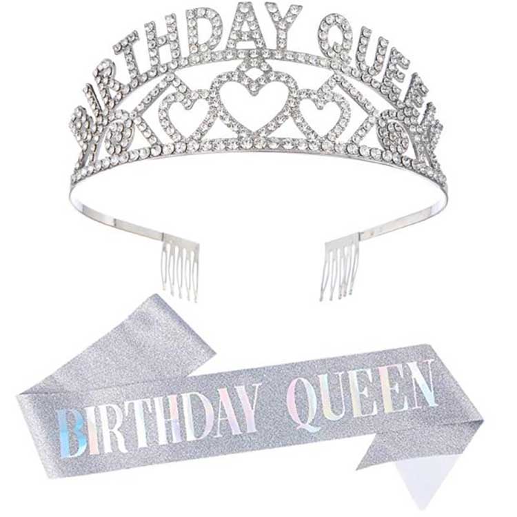 Корона Birthday Queen Crown — це головний убір, який постачається в комплекті з плечовим ременем. Основна частина корони виготовлена зі сплаву, тому вона не потьмяніє та не пошкодиться. Ми використали техніку інкрустації, щоб закріпити діаманти на каркасі зі сплаву, запобігаючи їх легкому падінню. Ця ідеальна якість продукту гарантує, що ви зможете продовжувати використовувати його на майбутніх днях народження.