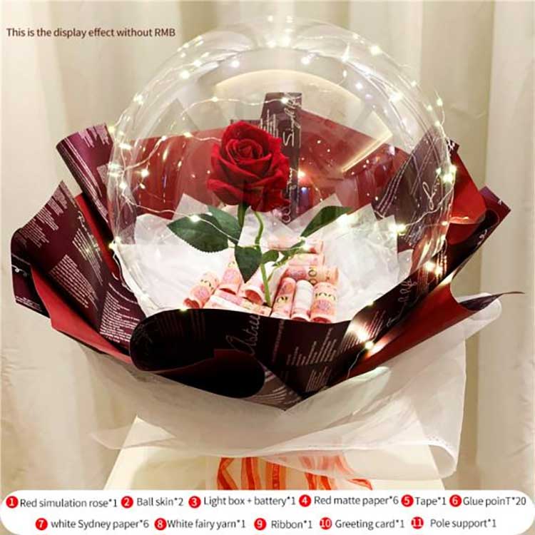 Повітряна куля BOBOнеймовірно атмосферний:Завдяки прозорим повітряним кулькам BOBO, вбудованим трояндам і світлодіодним підсвічуванням набір створює яскравий і романтичний візуальний ефект. Світлодіодні ліхтарі також забезпечують м’яке світіння, що робить його незамінним подарунком на День святого Валентина, ювілеї, дні народження, випускні та День матері.