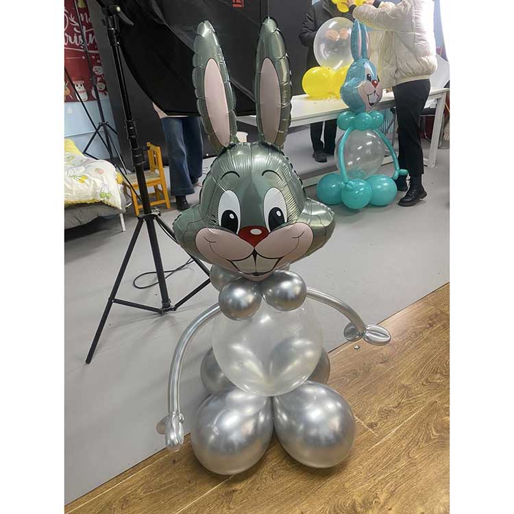 Фольгована повітряна куля Багз Банні використовується для пасхальних заходів. Довгі вушка, грайлива усмішка та живі очі Багза Банні разом із яскравими та насиченими кольорами привернуть увагу дітей та створять святкову атмосферу. Набір виробів з фольгованих повітряних куль Багз Банні. Комбінація фольгованих повітряних куль і латексних куль створює 3D-ефект, запалюючи радісну атмосферу. Повітряна куля Багз Банні доступна в чотирьох кольорах: рожевому, блакитному, сірому та зеленому. Кожна фольгована повітряна кулька поєднується з латексною повітряною кулею такого ж кольору. Вироби відрізняються високою міцністю. Повітряні кулі з фольги використовують потовщений процес запечатування, що дозволяє їм залишатися надутими протягом 2-3 тижнів. Латексні кульки також дуже товсті; 12-дюймова повітряна куля використовує 2,8 г латексу і може залишатися надутою приблизно 4 тижні. Усі використані матеріали безпечні для дітей, не мають запаху та не містять шкідливих речовин, що робить їх безпечними для дітей. Фольгована повітряна куля Багз Банні не тільки на Великдень; їх також можна використовувати як прикраси столу або фотореквізит для дитячих днів народження, створюючи веселий та ігровий простір. Їх також можна подарувати як вітальні подарунки на 100-річчя малюка. Доступна настройка; . Newshine як виробник повітряних куль із багаторічним досвідом виробництва повітряних куль. Ми можемо задовольнити будь-які ваші творчі потреби.