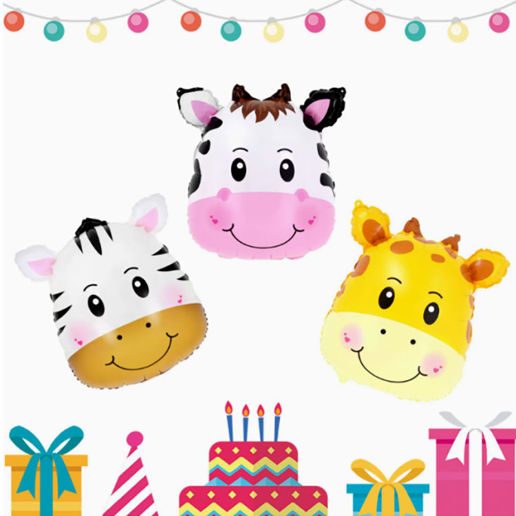 Фольгована повітряна куля з мультяшною головою тварини використовує технологію друку високої чіткості, що забезпечує яскраві кольори та відновлює миле зображення тварини. Вони містять різноманітних тварин, таких як гумові качечки, панди, жирафи, лисиці, слони, зебри та кролики, на різні теми.