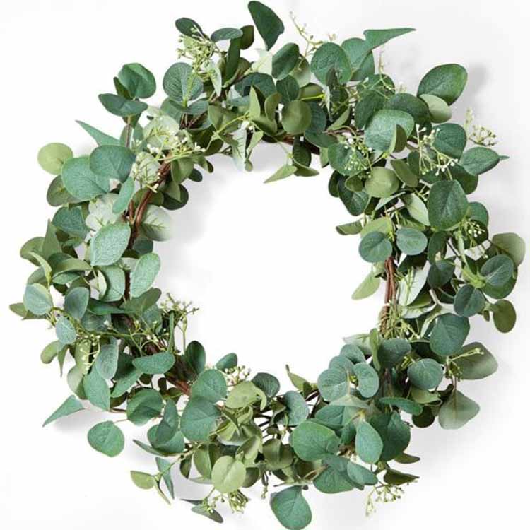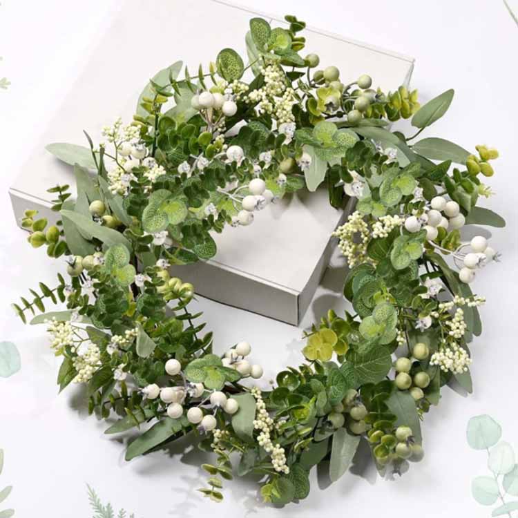 Основним елементом декоративної гірлянди є листя з різними стилями, інкрустованими різними квітами як прикрасами, а загальна форма кругла. Прожилки листя чітко видно, створюючи реалістичний ефект. Він витримує ультрафіолетове випромінювання та не зникає. Це найкращий вибір для прикраси передньої частини будинку або камінної полиці під час Різдва.
