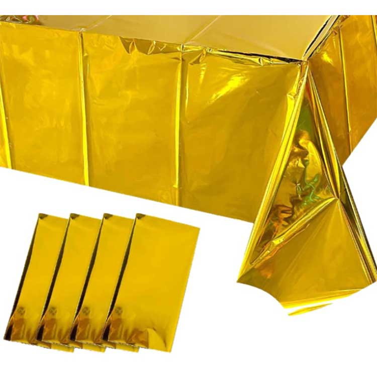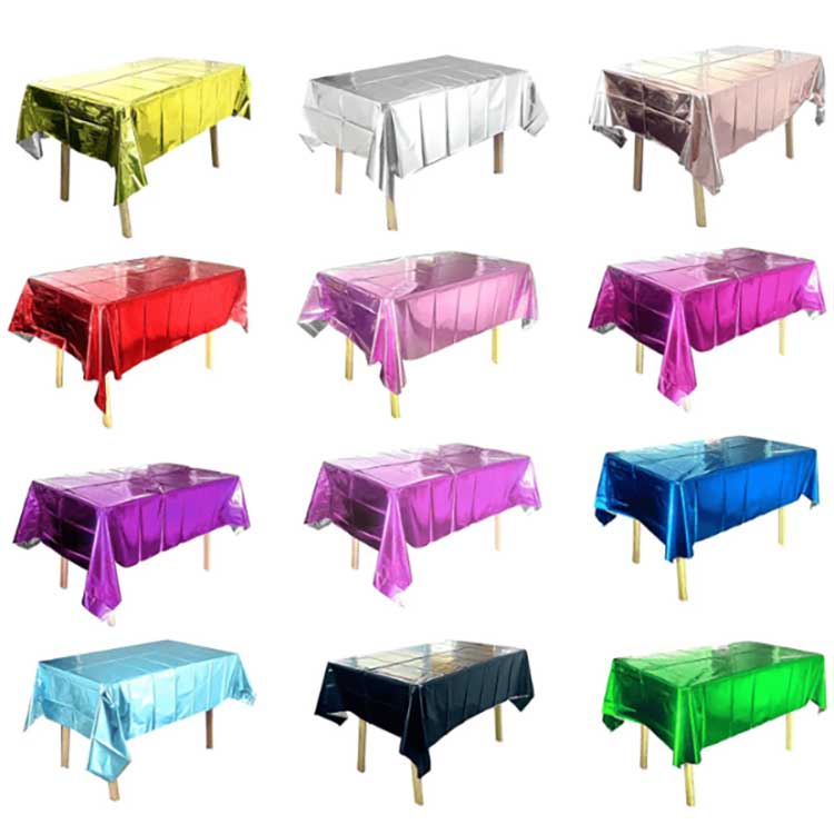 Фольговане покриття для столу використовується для сервірування столу на різних урочистостях. Це може захистити поверхню столу від плям, подряпин або пошкоджень, а кольори та візерунки також можуть принести декоративні ефекти. Виготовляється зі спеціальної ПЕТ плівки з алюмінієвим покриттям. У процесі виробництва ми використовували технологію вакуумного покриття, щоб забезпечити міцність, міцність і стійкість до старіння кришки столу. Крім того, його молекули високої щільності можуть ефективно запобігти проникненню супових або масляних плям, а також він має водонепроникну функцію.