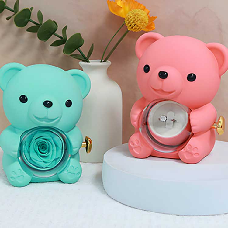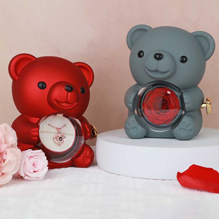 Цю скриньку для коштовностей Hug Bear Rose можна використовувати для демонстрації на столі, книжковій полиці або тумбочці. Його особливою особливістю є збережена троянда в центрі. Відкривши троянду, ви побачите відділення для ювелірних прикрас, каблучок або сувенірів.