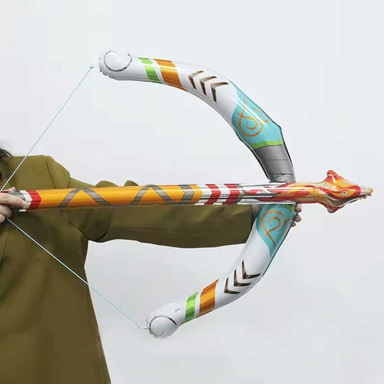 Надування: Надувний іграшковий набір із лука та стріл, повністю використовуючи рот або маленький повітряний насос (зазвичай не входить у комплект).