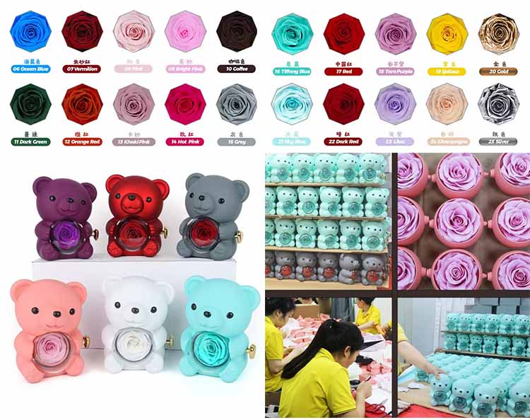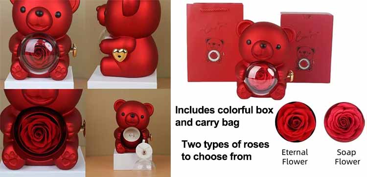 Для ефективного захисту збереженого квіткового ведмедика від пошкоджень під час транспортування кожен ведмедик окремо упакований з амортизуючою пінопластовою підкладкою та мішком для пилу, щоб захистити його від пилу та зносу. Вони доступні в різноманітних кольорах, щоб задовольнити ваші потреби на будь-який випадок, створюючи справді особливий досвід для вас.
