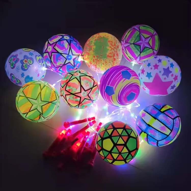 Назляні підстрибні кульки зі світлодіодними вогнями підстрибну куля, прив'язану до струни, з світлодіодними вогнями, вбудованими всередину або на поверхні. Коли перегортаються, світлодіоди випромінюють барвисті вогні, коли ви відскакуєте, гойдаєте або тримаєте його. Ці вогні більш помітні в темних умовах.
